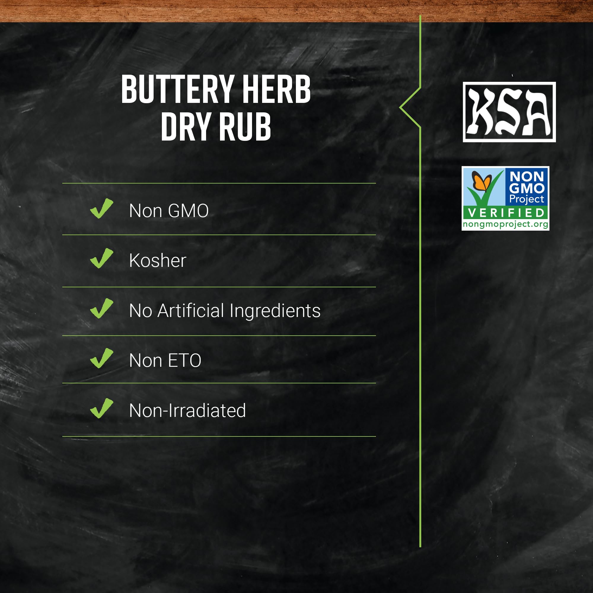 - BUTTERY HERB DRY RUB - Featuring robust buttery notes and an herbaceous blend of thyme and rosemary. Perfect for adding depth and richness to your grilled creations.