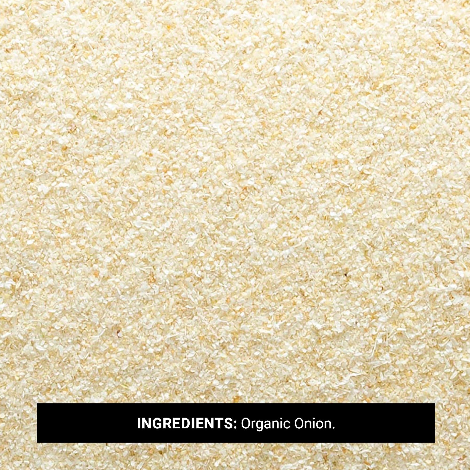 - American Grown - Our Organic Onion Granules are sourced in the USA, ensuring peak aroma and flavor. These dehydrated, diced onion granules are Kosher and non-irradiated with no additives.